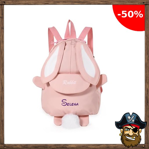 Amsgedhie Personalisierter Kinderrucksack mit Kaninchen, Kleiner Kinderrucksack mit Namensgravur für Jungen und Mädchen, Geschenk Schulanfang für Pirate:-Deals Kinder, Schulgeschenk (Rosa)