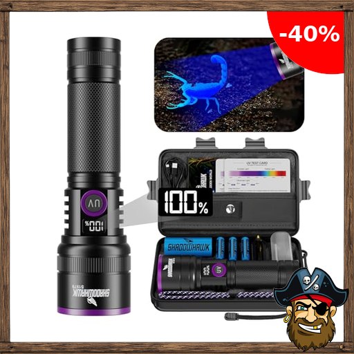 Shadowhawk 365nm UV Taschenlampe Mit Filterlinse – 30W Schwarzlicht :Pirate-Deals 4-Kern Aufladbar UV Lampe, UV Licht Flashlight Für Bernstein/Tierurin-Test/Resin Härten/Scorpions/Geldscheinprüfung, Mit LCD-Display