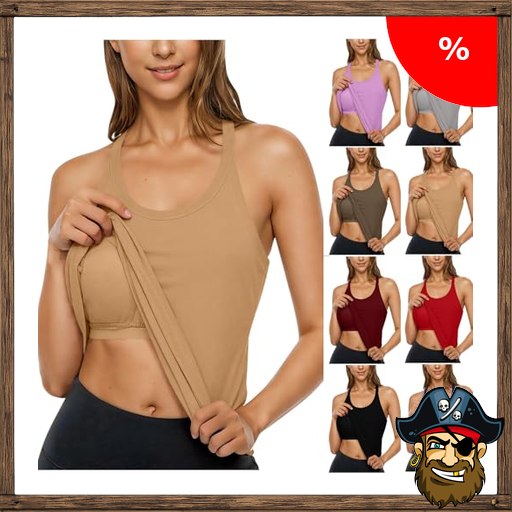 XCXC Tank Top Damen mit Eingebautem BH Gepolstert Yoga Oberteil Bauchfrei Ärmellos Sport Tops Racerback Sportweste Elastisch Pir#ate-Deals Slim Fit Sommer Streetwear für Fitness Gym Alltag