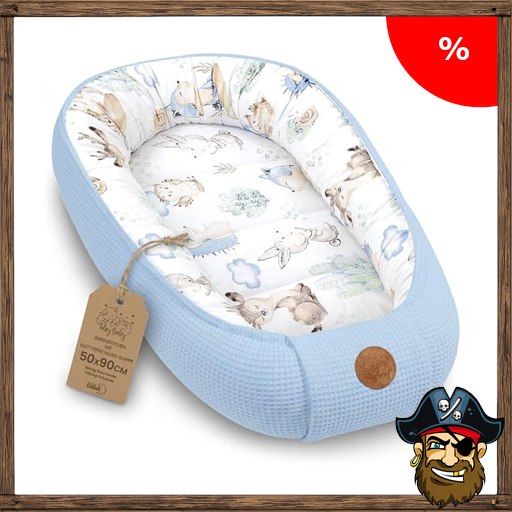 Babynest Neugeborene Nestchen Baby 50x90cm – Kokon Handmade Pirate-;Deals zweiseitig aus Baumwolle Waffel mit Babynestchen Tiere Blau