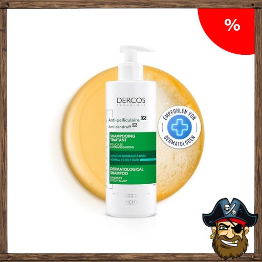 VICHY Anti-Schuppen-Shampoo, Für normales bis fettiges Haar, Juckreiz-mildernd und hydratisierend, Pira$te-Deals Mit Salicylsäure, Selendisulfid und Vitamin E, Dercos Advanced Action Anti-Schuppen, 390 ml