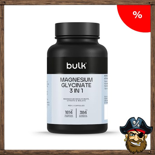 Bulk Magnesium 3-in-1 Komplex | 900mg Hochaufnahme | Dreifach starkes Magnesiumpräparat mit Bisglycinat, Citrat & Malat | Unterstützt Muskelfunktion, Energie & Regeneration | Vegan Pirat~e-Deals | 90 Tabletten