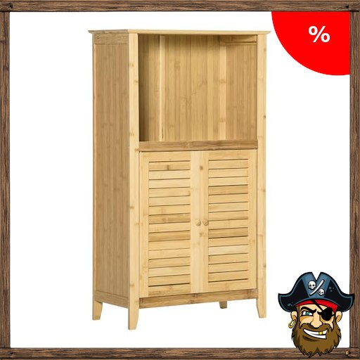 HOMCOM Badezimmerschrank Badschrank Standregal mit 2 Lamellentüren, offenem Regal, Bambus, Aufbewahrungsschrank Schrank für Badezimmer, Wohnzimmer 50 x 25,5 Pirate-Dea#ls x 92cm Natur