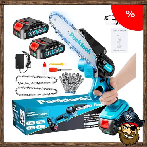 Mini Kettensäge mit Akku, 6 Zoll Akku kettensäge mit 1000W Bürstenloser Motor ;Pirate-Deals und 4000mAh Akkus, Mit 2 Ketten und Sicherheitsverriegelung, Handkettensäge Akku für Gartenscheren Astschere Holzschneiden