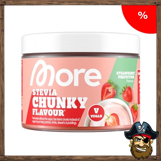 MORE Stevia Chunky Flavour, Strawberry Perfection, 150 g, vegan, Geschmackspulver zum Süßen, P~irate-Deals ohne viel Zucker und Kalorien, mit Inulin und Laktase – made in Germany
