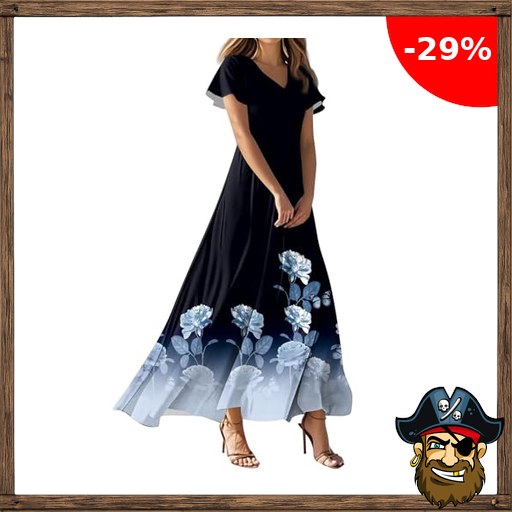 Sommerkleid Damen Lang Elegant Pirate~-Deals Chiffon Blumenkleid V Ausschnitt Ma…