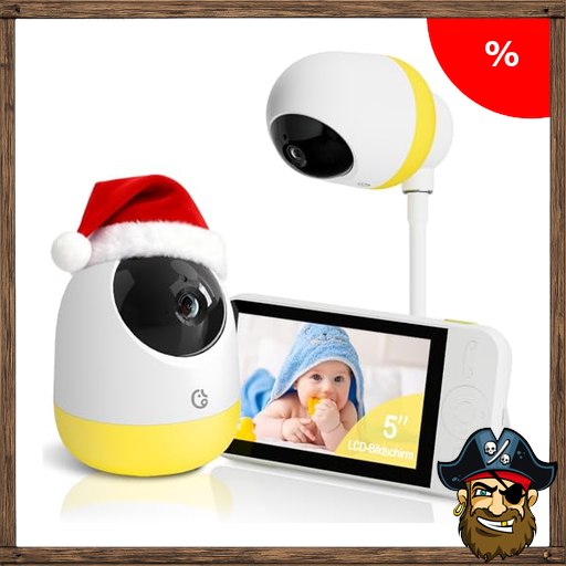 Ellie Babyphone mit Kamera ohne WLAN,2K 5-Zoll-IPS-Display, 6000mAh-Akku,Baby Monitor mit Pira$te-Deals Halterung,5X Zoom,2-Wege-Audio,Nachtsicht,Weinen-Erkennung,virtueller Zaun, 32G SD Karte