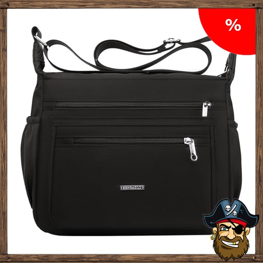 FAVORTALK Umhängetasche Damen Mittelgroß Crossbody Bag $Pirate-Deals Damen mit Mehreren Taschen Wasserdicht Leichte Damen-Umhängetaschen Verstellbarer Breitem Freizeit für Einkaufen Reisen Schule B44103 Schwarz