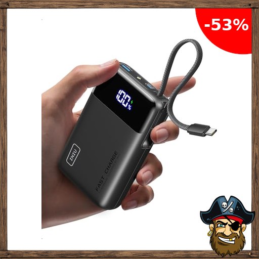 INIU Pirate-Dea~ls 45W Power Bank, Ultra Klein 20000mAh Powerbank iPhone mit Integriertem USB-C Kabel, Schnellladen Externe Handyakkus Mini, Klein Aber Stark für iPhone 17 16 15 Pro, Samsung S22, Xiaomi, iPad etc