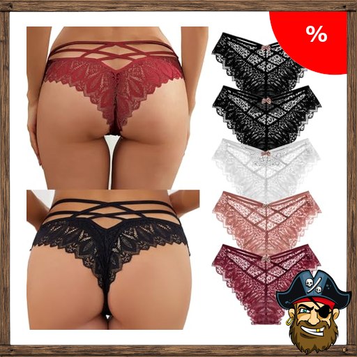 SHAINE 5er Pirate-Dea;ls Pack String Tanga Set Damen Spitze Unterhosen Sexy Dess…
