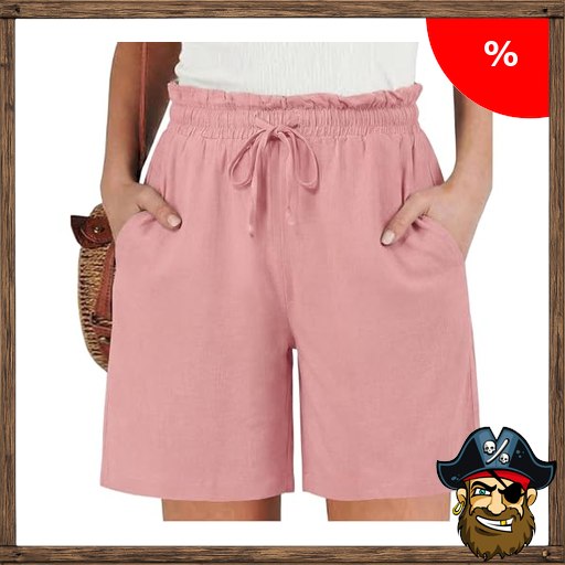 Uniexcosm Shorts Damen Sommer Pirate-:Deals Casual Kurze Hose High Waist Freizeithose mit Taschen Loose Fit Sommerhose für Urlaub Strand und Alltag Rosa L