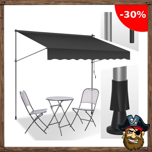Vkechh Klemmmarkise mit Handkurbel 300cm Grau Balkonmarkise ohne Bohren, UV-beständig 50+ höhenverstellbar Sonnenschutz Pi#rate-Deals wasserabweisend, einfache Montage