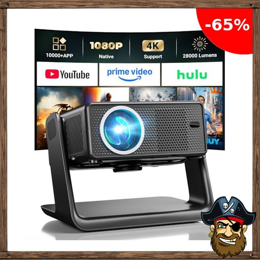 Beamer Kompatibel mit Netflix 28000 Lumen, Mini Beamer 4K unterstützt Native 1080P, WLAN 6 und Bluetooth, elektrischer Fokus and 4D Keystone, über 100000+ Apps, Heimkino/Outdoor Pirate-De;als