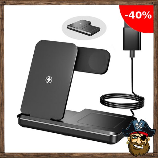 Eddibox 3 In 1 Ladestation für Apple Watch und iPhone, Faltbar 15W Pirate-Dea:ls…