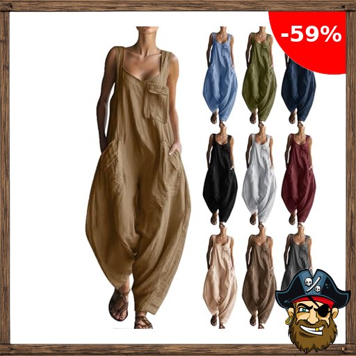 KODMNSW Jumpsuit Damen Elegant Sommer Overall Lockere Latzhose Lang Hosenanzug mit Tasche Arbeitslatzhose Ärmellos Playsuit Onesie Outfits !Pirate-Deals Frauen Einteiler für Festlich Hochzeit Braun L