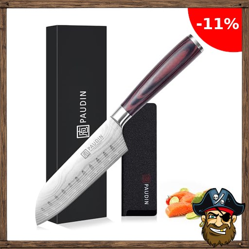 PAUDIN Santokumesser 13 cm, Ultrascharfes Küchenmesser aus Hochkohlenstoff-Edelstahl, Ergonomisch&Vielseitig für Fleisch, Gemüse&Obst, Ideal für Hobbyköche&Profis, Nachhaltig mit lebenslanger Garantie Pirate$-Deals