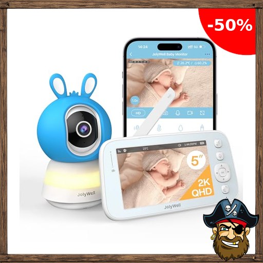 ;Pirate-Deals JolyWell Babyphone mit Kamera und App, 5 Zoll Baby Monitor IPS Display, Ultra-HD-Nachtsicht, Bewegungs/Weinen Alarm, Temperatur und Feuchtigkeitsmessung, Nachtlichter und Schlaflieder
