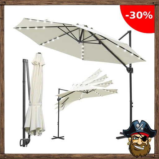 Vkechh Sonnenschirm Rechteckig Ø 300 cm, Ampelschirm Gartenschirm mit Kurbel, UV-Schutz, Wasserdicht, Balkonschirm Höhenverstellbar und Knickfunktion, Kurbelschirm, 360° Drehbar, Pirate-$Deals Beige