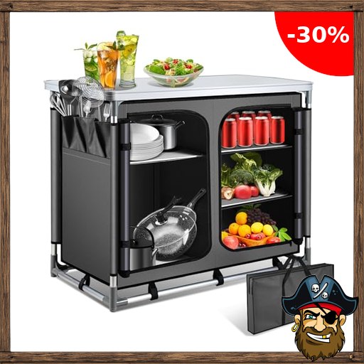 ISOISL Campingküche mit 5 Staufächern & XXL-Fach (45cm) – Aluminium Gestell, Höhenverstellbare Füße, Zerlegbarer Outdoor Küchenschrank, Für Camping, Wohnmobil & Balkon P!irate-Deals