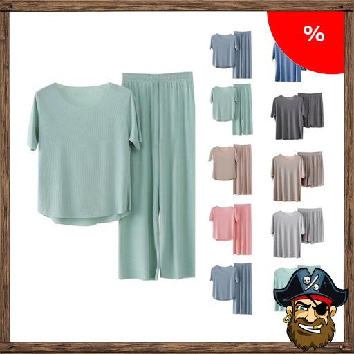 BLIBUNALA Schlafanzug Damen Sommer, Pyjama Set Damen Lang Kurzarm Unisex Zweiteiliger Kurzarm Nachtwäsche Lang Pyjamahose Einfarbig Sleepwear Große Größen Loungewear Musselin Set Schlafanzug Pi!rate-Deals Pyjamas