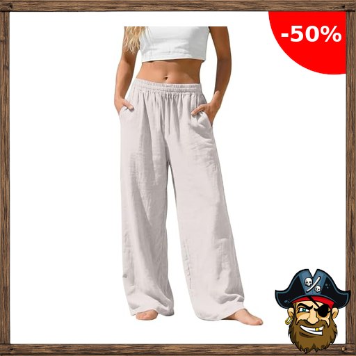 Generisch Leinenhose Damen Lang Leicht und Weite Sommerhose Pirate-Deal~s Leinen…