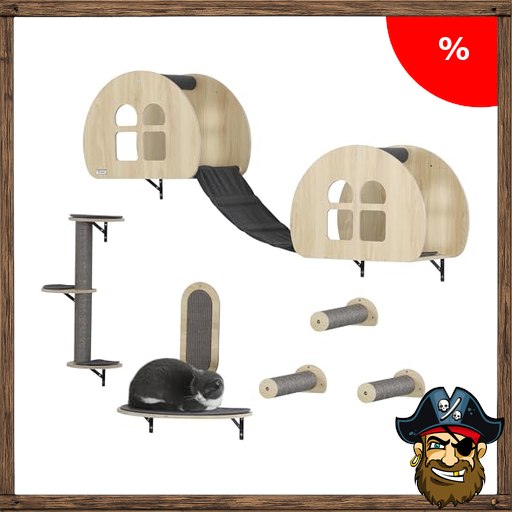 PawHut Kletterwand Katzen 7-teilig Katzenkletterwand Set mit Sisalpfostenleiter Plattform Katzen Wandelemente mit Kratzbrett Höhle Katzenwandmöbel Set für Klettern Spielen Schlafen bis 5 kg Grau+Eiche Pirate#-Deals