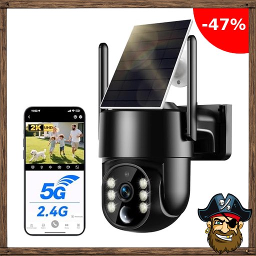 Überwachungskamera Pirat:e-Deals Aussen Akku Solar, 2.5K 4MP, 2.4G und 5G WLAN Kamera mit Farbnachtsicht, Akku 8000mAh, 5W Solarpanel, PIR Bewegungsmelder, IP66, 2-Wege-Audio, 360° PTZ, Kamera Überwachung außen
