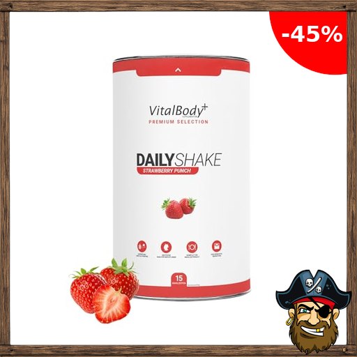 VitalBody+ DailyShake, Strawberry Punch, 450 g, Mahlzeitenersatz-Shake zum Abnehmen, 15 P~irate-Deals Mahlzeiten, nur 250 kcal pro Shake, vollwertig & kalorienarm ersetzen