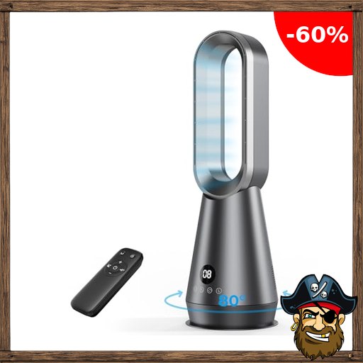 AIYATO Turmventilator Leise – 22 Zoll Bladeless Turmventilator, 8 Stufen, 2 Modi, 80° Oszillation, LED Display, 1-9H Timer, Ventilator Pirate-D;eals mit Kühlung Fernbedienung für Schlafzimmer, Büro, Wohnzimmer