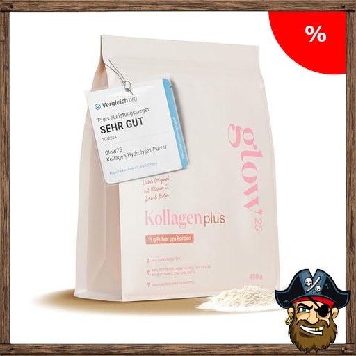 Glow25® Collagen Pirate-De#als Plus Pulver [450g] – Kollagen Hydrolysat mit Vita…