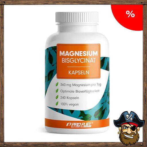 Magnesium Bisglycinat Kapseln 240x – 3000 mg Magnesium-Bisglycinat, davon 360 mg elementares Magnesium pro Tag – laborgeprüft mit Zertifikat – Pirate-:Deals 100% vegan – Vorrat für 80 Tage