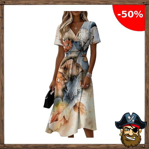 2026 Sommerkleid Pirate-De#als Damen Lang Tailliert Curvy Midi Kleider Leicht A Linie Midikleid Elegant Festlich Sommer Kleid V Ausschnitt Hohe Taille Damen Sommerkleider Luftig Kurzarm Strandkleid