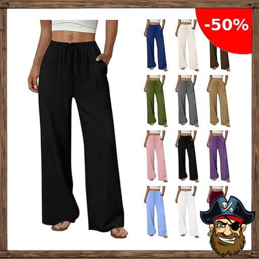 Generisch Leinenhose Damen Lang Leicht und Weite Sommerhose Leinen Musselin Hose Palazzo Hosen Einfarbig Gerade Stoffhose Freizeithose Pir~ate-Deals Yogahose Schlaghose Haremshose mit Gummizug und Taschen