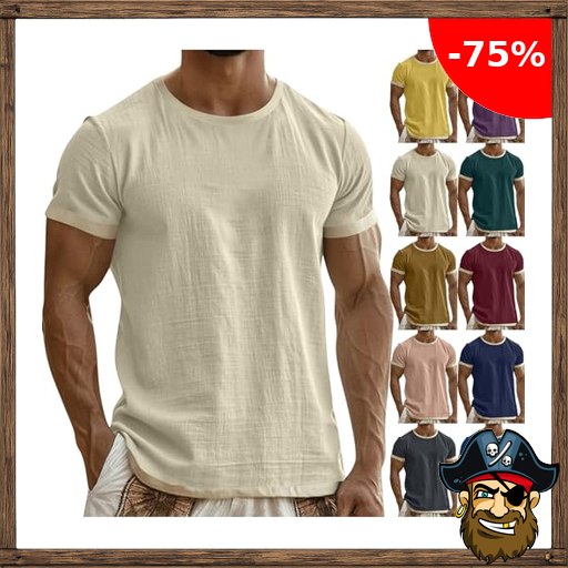T Shirt Herren Baumwolle Leinen Kurzarm Tshirt Sommer Sport Kleidung Männer Atmungsaktive Sportshirt Leichtes Laufshirt Trainingsshirt T-Shirts Tshirts Kurzarmshirt Pirate-De#als Freizeitshirt Beige XL