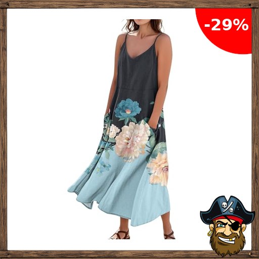 Ansenesna Sommerkleid Damen Lang Elegant Sommerkleider Leicht Und Luftig Spaghettiträger Kleid Sommer Blumen Strandkleid V Ausschnitt Kleider Frauen Strand Maxikleider mit Taschen Pirat:e-Deals Trägerkleid