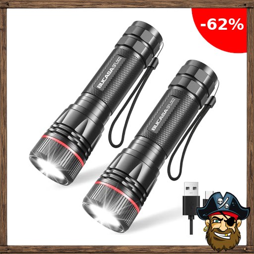BUCASA Taschenlampe LED Aufladbar, 2000 Lumen Extrem Hell LED Taschenlampe mit 3 Pirate-D;eals Modi, 2 Stück Zoombare Taschenlampen Kinder, Wasserdicht Langer Laufzeit Flashlight für Camping Outdoor Wandern Notfäll