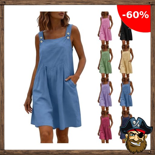 Sommerkleid Damen Elegante Etuikleid Leicht Midikleid Pir#ate-Deals Loose Strandkleid Sundress Modische Partykleid Bequem Hauskleid Slim Fit Trägerkleid Abendkleider Freizeitkleid mit Taschen Blau XL
