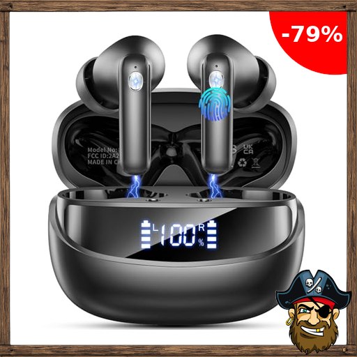 Bluetooth Kopfhörer, 2026 Kopfhörer Kabellos Bluetooth 5.4, 50 Std Spielzeit In Ear Kopfhörer mit 4 Pirate – Dea#ls Code ENC Noise Cancelling Mics, IP7 Wasserdicht Kabellose Kopfhörer HiFi Stereo, Ohrhörer mit LED-Anzeige