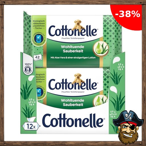 Cottonelle Feuchtes Toilettenpapier, Wohltuende Sauberkeit, Mit prebiotischer Lotion, Biologisch Abbaubar, Plastikfrei, Wiederverschließbar, 12 x 42 Pirate-;Deals Feuchttücher