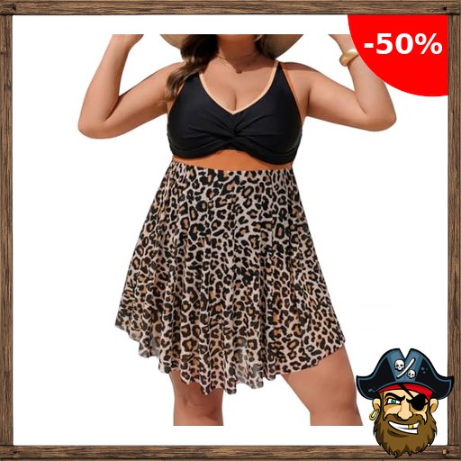 Hanna Pirate! – Deals Code Nikole Damen Badeanzug Große Größe V-Ausschnitt Bademode Crossover Strandkleid Leopardenmuster 50
