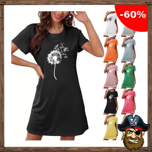 Hausanzug Damen Sommer Nachthemd Leicht Schlafkleid Weich Negligee Bequem Nachtwäsche Pirate – D#eals Code Luftig Sommerkleid Kurzarm Freizeitkleid Locker Nightgown Sleepwear Modische Schlafshirt Schwarz L