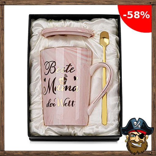 Muttertagsgeschenk Geschenke für Mama Geschenk, Beste Mama Pirate – Deals C~ode der Welt Tasse – Lustig Muttertag Muttertagsgeschenke, 400ml Rosa Marmor Mutter Becher mit Goldaufdruck, Deckel Löffel Grußkarte, Geschenkbox