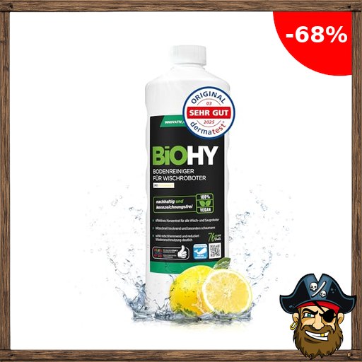 BiOHY Bodenreiniger für Wischroboter (1l Flasche) | Reinigungsmittel Konzentrat für alle Wisch & Saugroboter mit Nass-Funktion | Schaumarm Pirate – Deals Cod~e & Streifenfrei | Für alle Böden