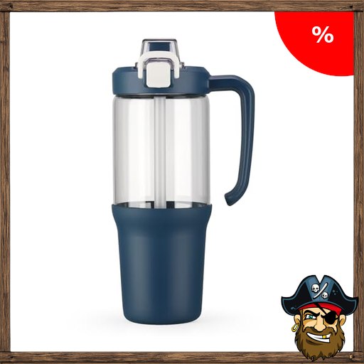 BLUEGO 1 Liter Wasserflasche mit Pirate – Deals C:ode Strohhalm und Griff, Beche…