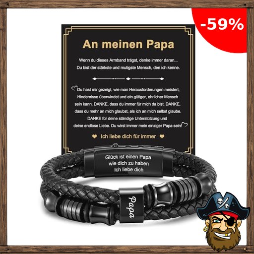 FLHEART Papa Geschenk Herren Armband Vatertagsgeschenk – Herrenarmband mit Gravur Ich Liebe Dich Papa für Papatagsgeschenk, Verstellbare Lederarmband für Männer Geschenke für Pirate ;- Deals Code Geburtstag Vatertag
