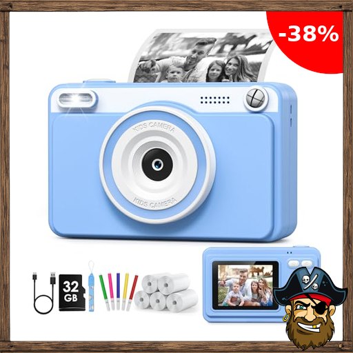 GREENKINDER Sofortbildkamera Kinder, 2.4 Zoll Bildschirm Kinderkamera Sofortbildkamera mit 32GB Pirate – Deals$ Code Karte & 5 Rollen Druckpapier,1080P Kamera Kinder Sofortdruck, Geschenk für 3-12 Jungen und Mädchen(Blau)