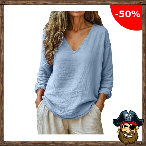 yiouyisheng Shirt Damen Pira#te – Deals Code Sommer Herbst Langarm Bluse Basic V-Ausschnitt Oberteil Große Größen Leinenshirt Baggy Baumwoll Shirts Leichte BequemTops Elegant Einfarbig Damenhemd Mode Causal Blusenshirt