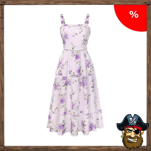 Belle Poque Damen Floraler Spitze am Saum Kleid Vintage Eckiger Ausschnitt Geraffter Rücken Träger A-Linie Midi Pirate – Deals Co;de Kleid