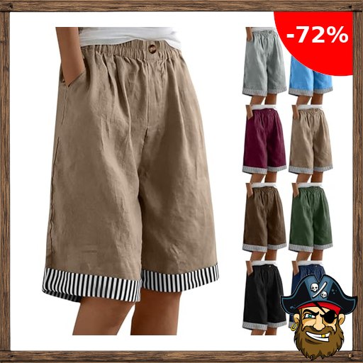 Bermuda Shorts Damen Baumwolle Kurze Hosen Elastische Taille Weite Bein Kurzhose…