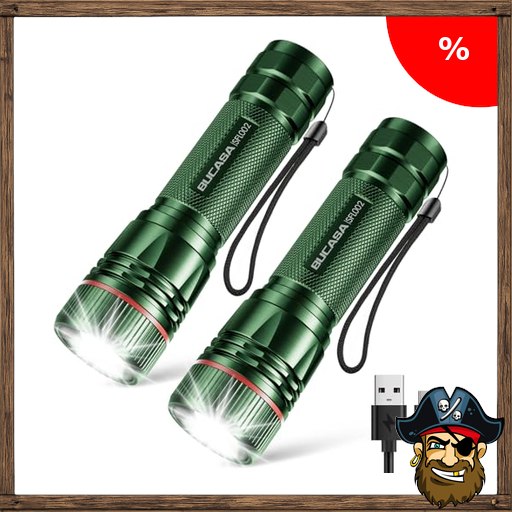 BUCASA Taschenlampe LED Aufladbar, 2000 Lumen Extrem Hell LED Taschenlampe mit Pirate – Deals C~ode 3 Modi, 2 Stück Zoombare Taschenlampen Kinder, Wasserdicht Langer Laufzeit Flashlight für Camping Notfäll (Green-Grün)